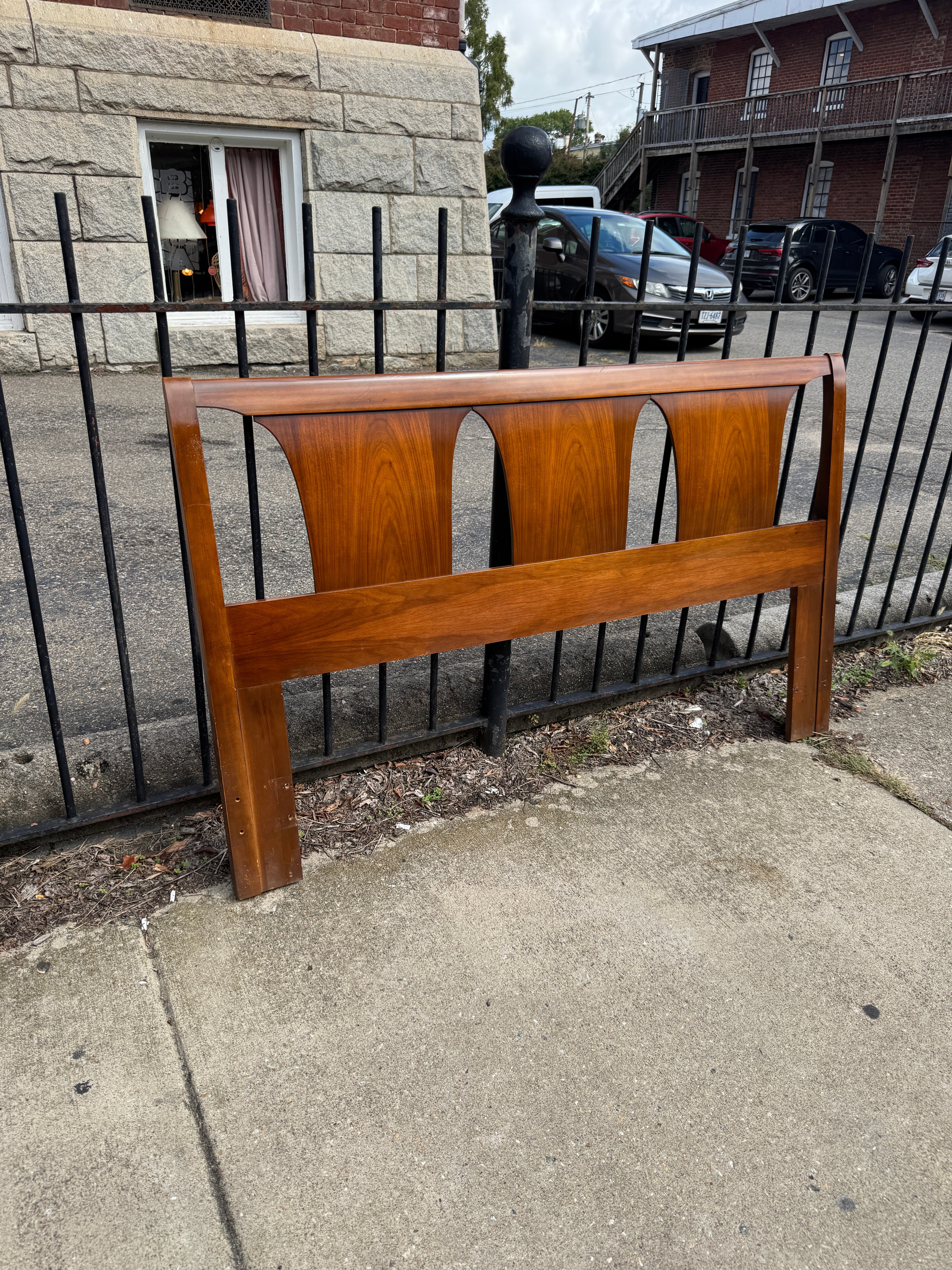 1960s walnut full headboard with tapered panels. In overall great condition with areas of minor wear— see pics.